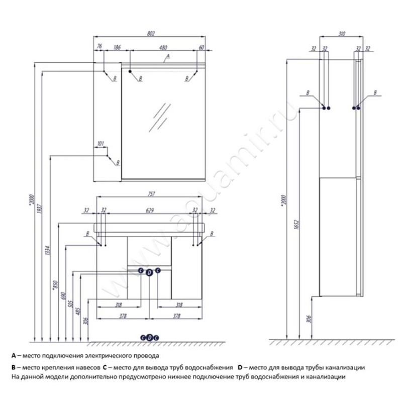 Зеркало-шкаф Aquaton Рене (1A222502NRC80)