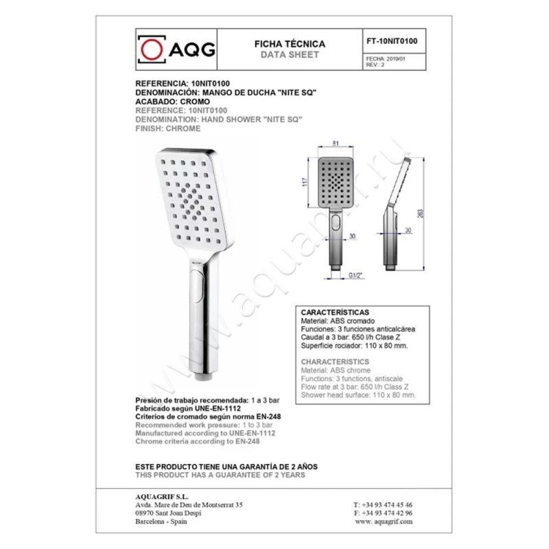 Смеситель для ванны AQG Alpha с душем, черный матовый, артикул товара 01ALP416NG, страна производства Испания.