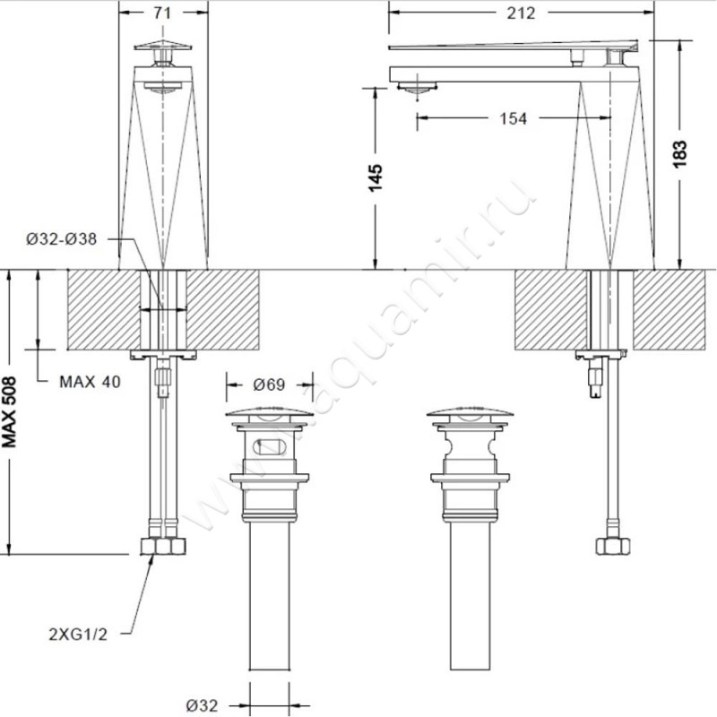 - Донный клапан в комплекте