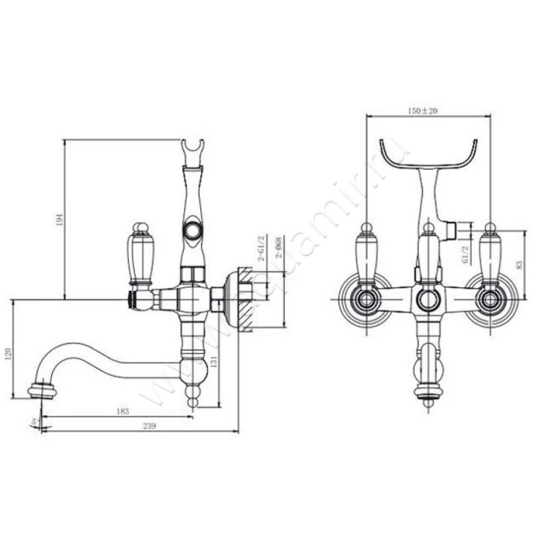 Смеситель для ванны Caprigo Adria Classic Metal Edition (03M510CRM)
