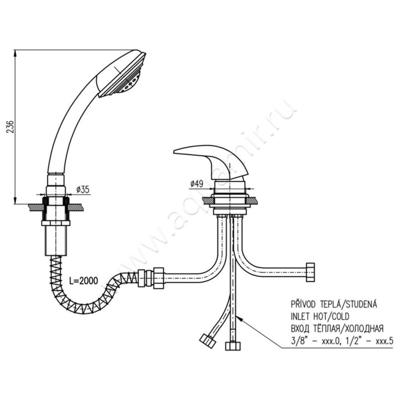 Смеситель для ванны Rav Slezak Dunaj с душем, хром (D4755Y)
