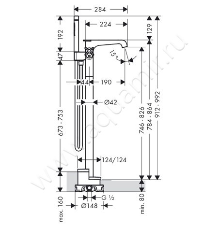 Напольный смеситель для ванны с термостатом Hansgrohe Axor Citterio E (36416000)