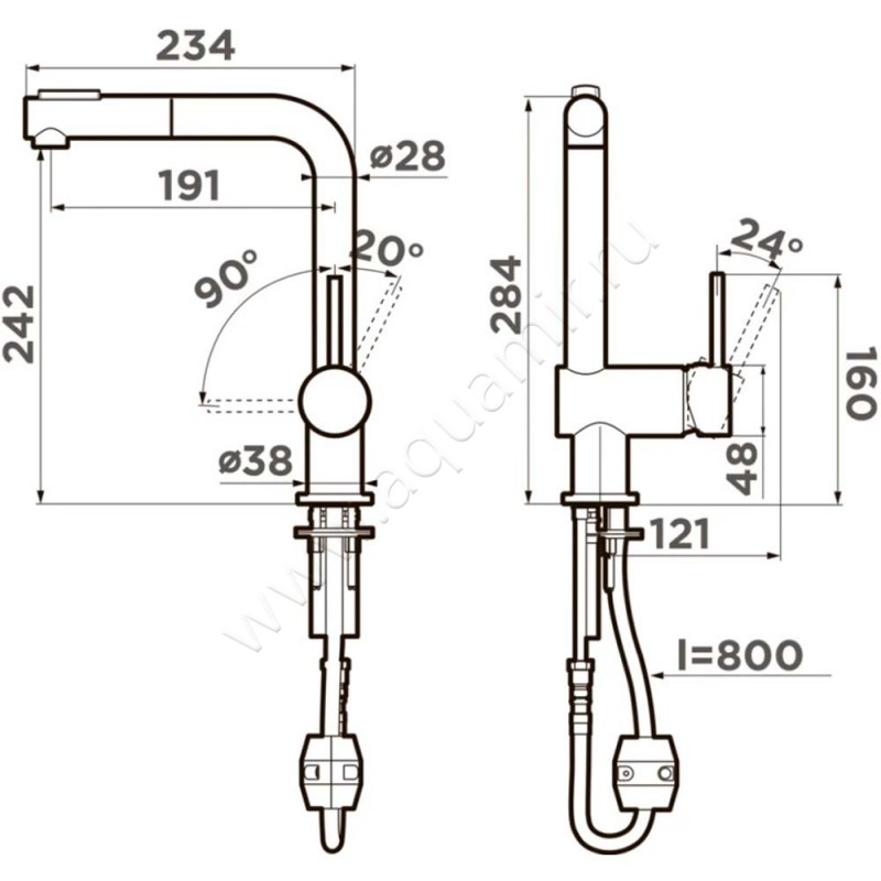 | Длина излива: | 191мм. |