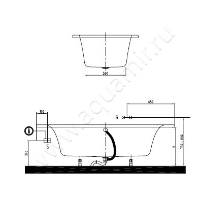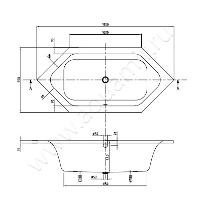 - Предусмотрена установка смесителя на борт ванны