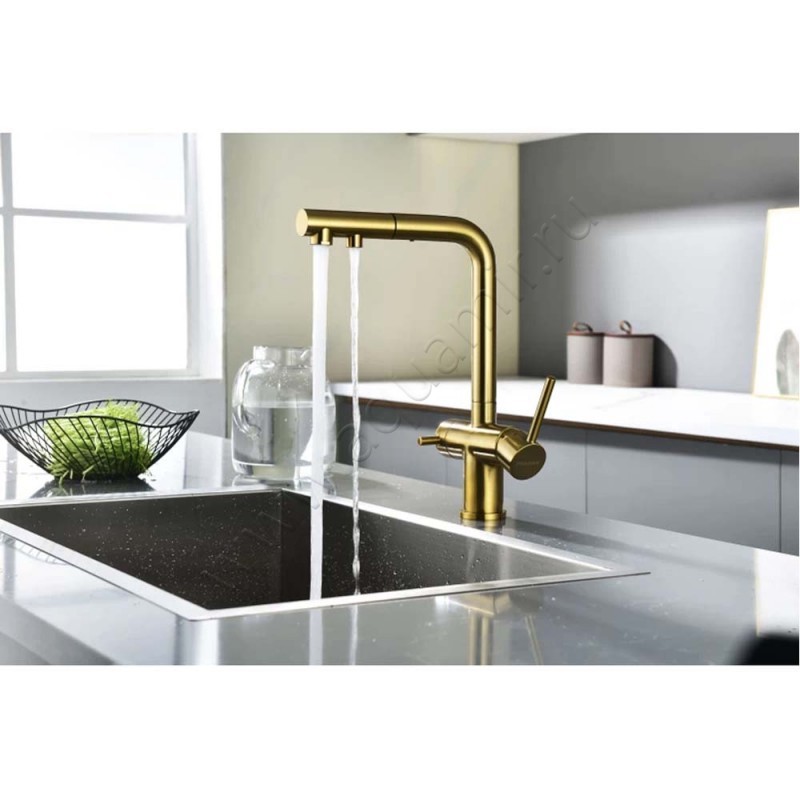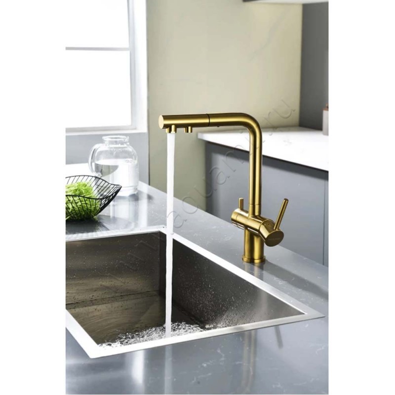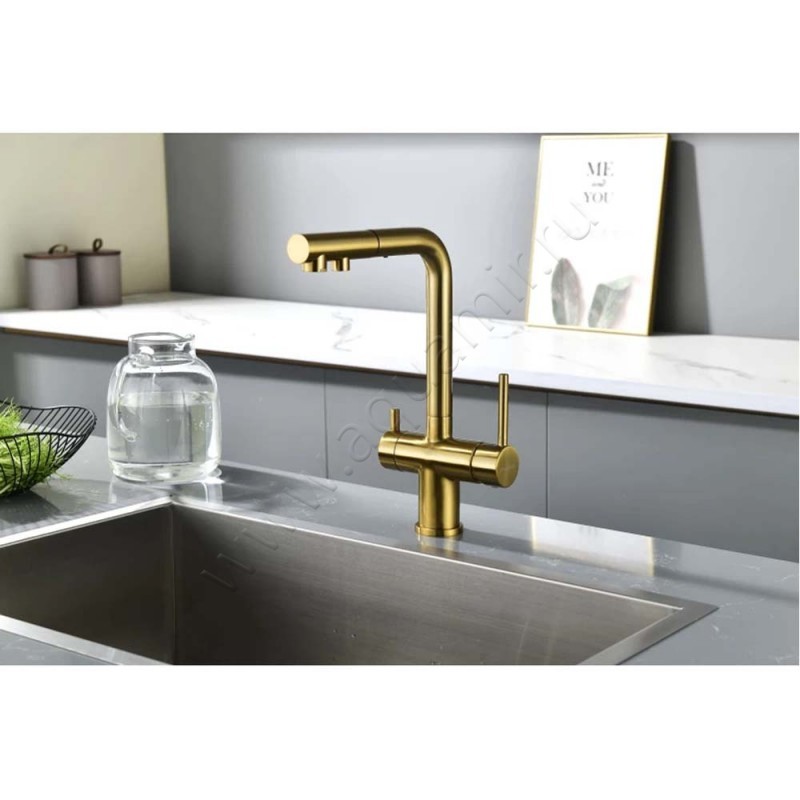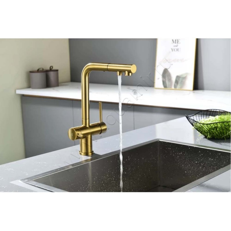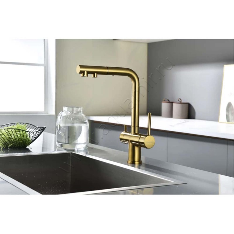 Смеситель для кухни Paulmark Serpentine для фильтра питьевой воды, золото матовое, артикул товара SE213222BG, страна производства Германия.