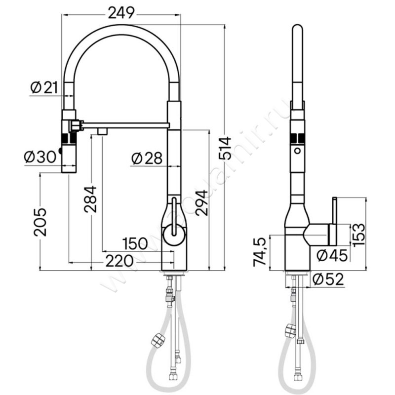 Смеситель для кухни Paulmark Magneto One для фильтра питьевой воды, сталь (MA213188GM)