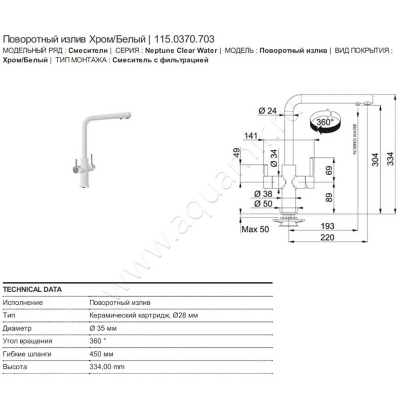 Смеситель Franke Neptune , артикул товара 1150370703, страна производства Германия.