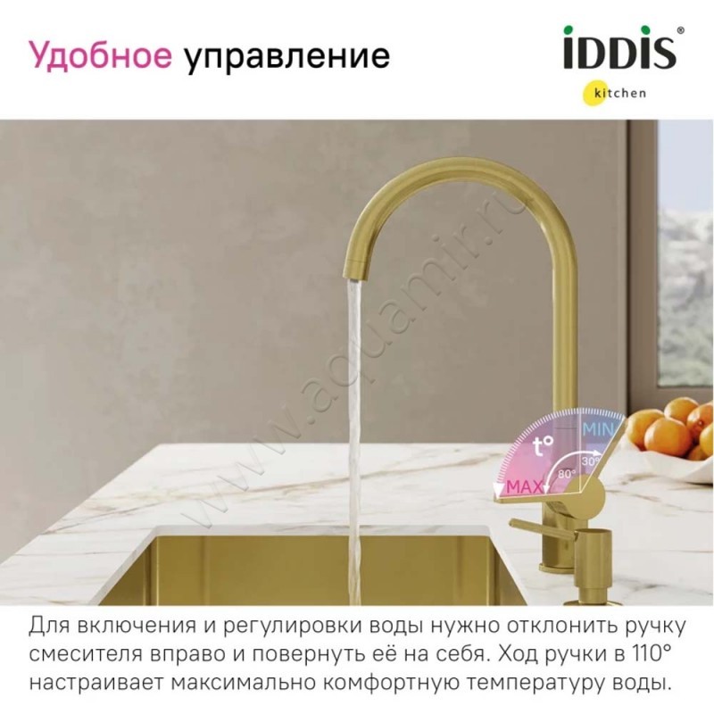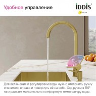 Смеситель для кухни Iddis Pure для фильтра питьевой воды, золото матовое, артикул товара PURMGFJI05, страна производства Россия.