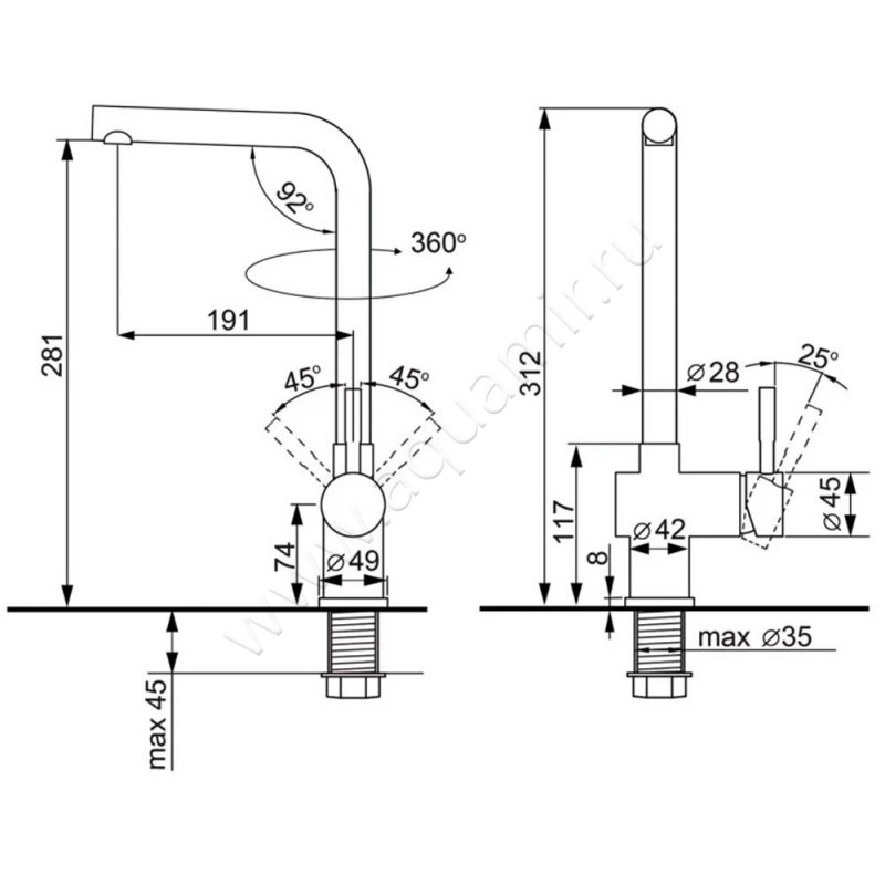 - Поворотный излив