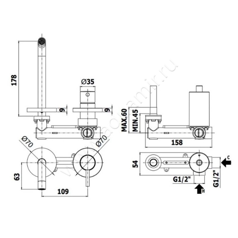 - Механизм управления - керамический картридж
