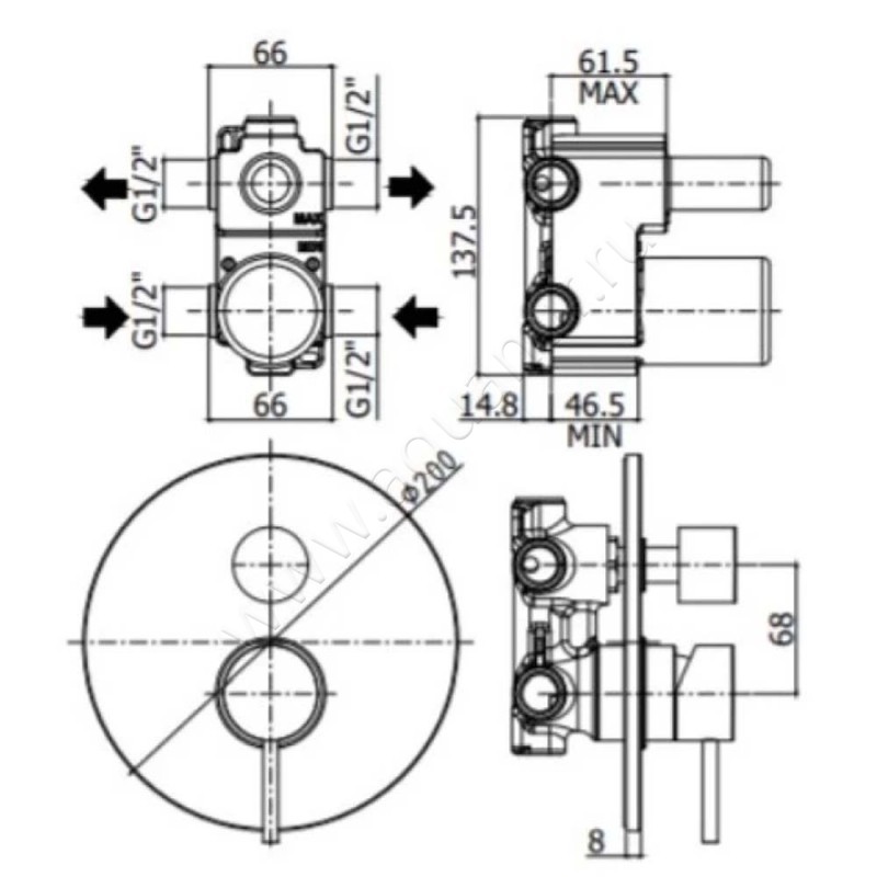 - Механизм управления - керамический картридж