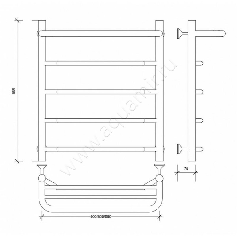 Полотенцесушитель водяной с полкой Secado Агата 1 СП 60x50, хром, артикул товара 4603759405186, страна производства Россия.