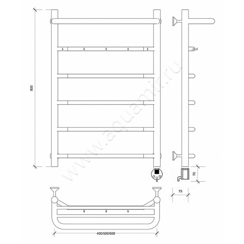 Полотенцесушитель электрический с крючками Secado Агата 1 К 80x60, хром, R (4603777449704)