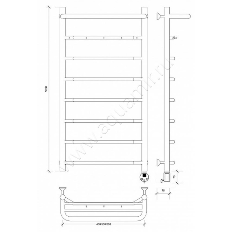 Полотенцесушитель электрический с крючками Secado Агата 1 К 100x40, хром, R (4603777449728)