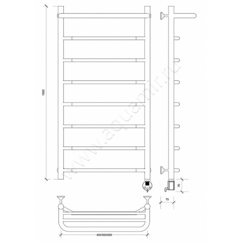 Полотенцесушитель электрический с полкой Secado Агата 1 СП 100x60, хром, L (4603777449896)