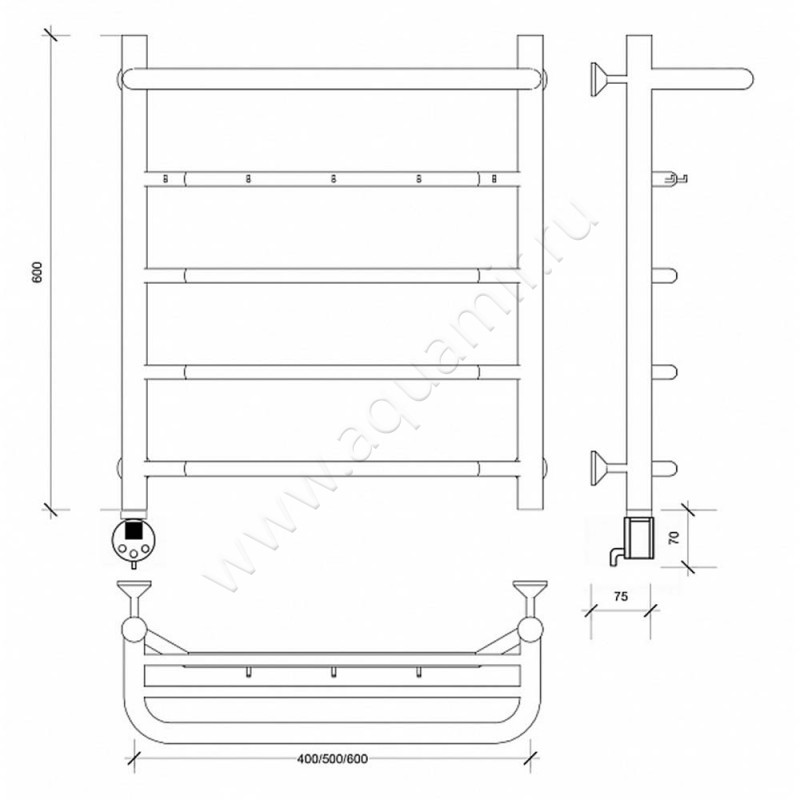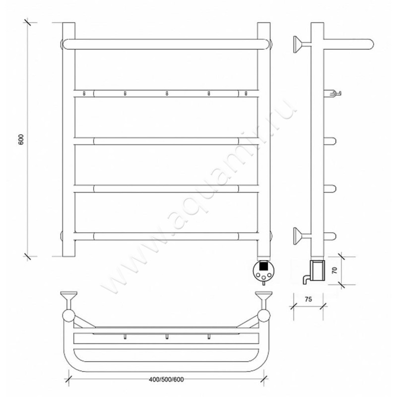 Полотенцесушитель электрический с крючками Secado Агата 1 КСП 60x40, хром, L (4603777449957)