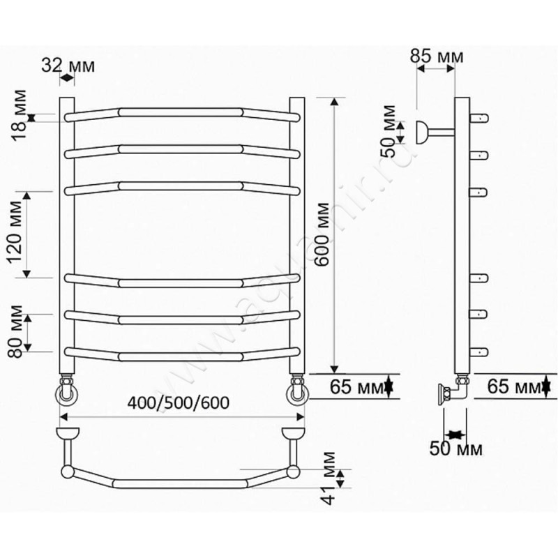 Полотенцесушитель латунный водяной Secado Агата 2 60x40, бронза, артикул товара 4603777459048, страна производства Россия.