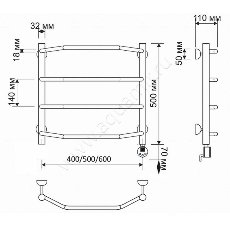 Полотенцесушитель латунный электрический Secado Агата 1 50x60, бронза, L (4603777461690)