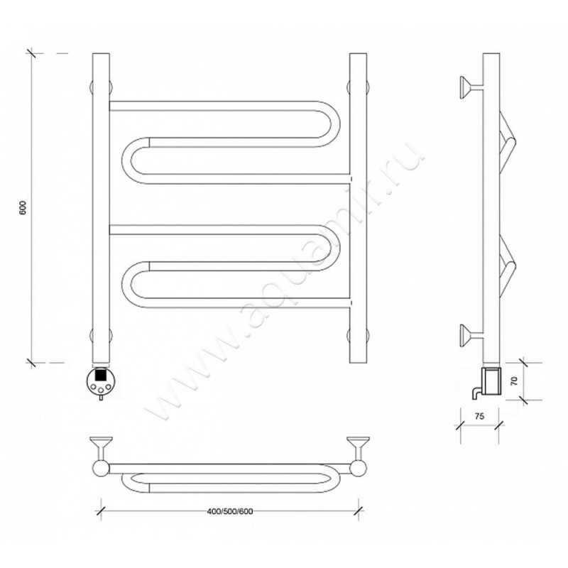 Полотенцесушитель электрический Secado Валенсия 1 60x60, хром, L (4603777453596)