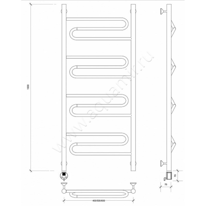 Полотенцесушитель электрический Secado Валенсия 1 100x40, хром, L (4603777453657)