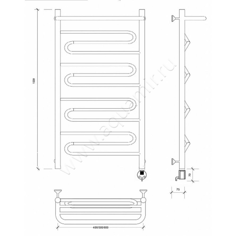 Полотенцесушитель электрический Secado Валенсия 1 100x50, хром, R (4603759408286)