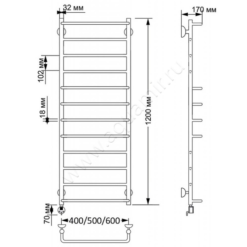 Полотенцесушитель латунный электрический Secado Верона 1 120x60, бронза, R (4603777464295)