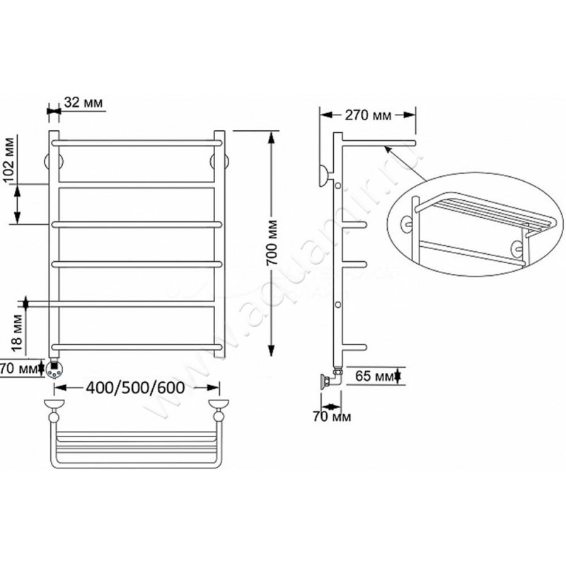 Полотенцесушитель латунный электрический Secado Верона 2 70x40, бронза, R (4603777464318)