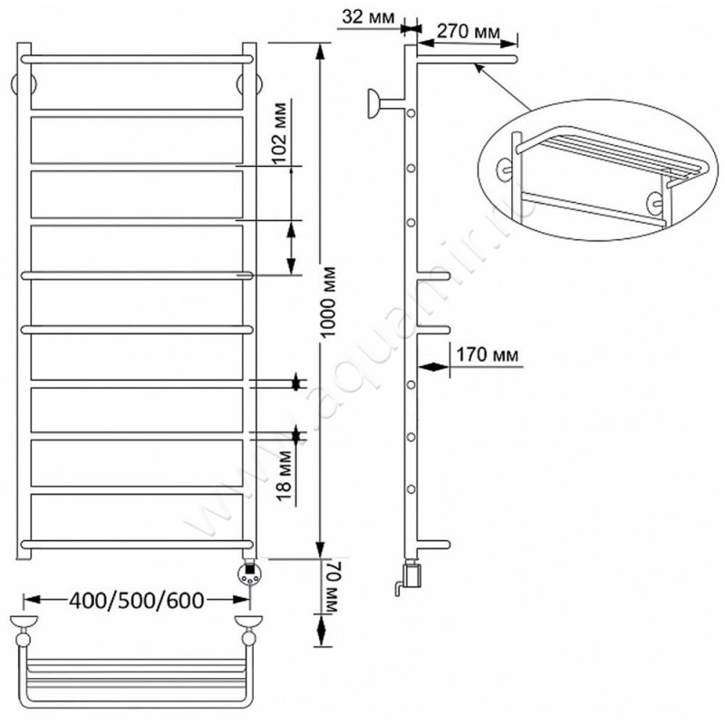 Полотенцесушитель латунный электрический Secado Верона 2 100x40, бронза, R (4603777468101)
