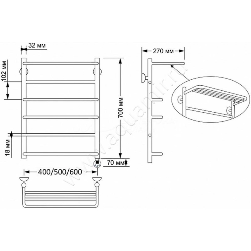 Полотенцесушитель латунный электрический Secado Верона 2 70x60, бронза, R (4603777464370)