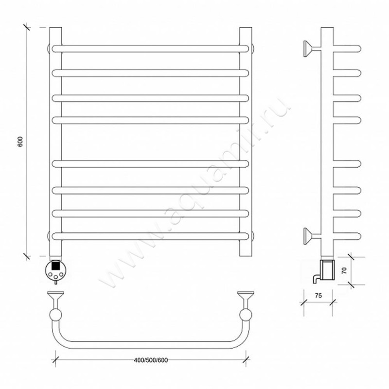 Полотенцесушитель электрический Secado Мерида 4 60x50, хром, R (4603759408804)