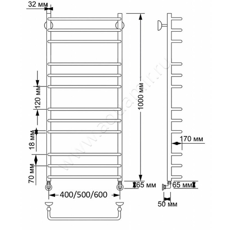 Полотенцесушитель латунный водяной Secado Мерида 3 100x60, бронза, артикул товара 4603777459932, страна производства Россия.