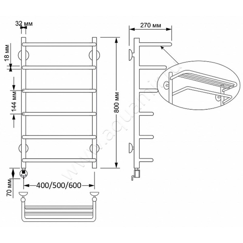 Полотенцесушитель латунный электрический Secado Мерида 2 80x50, бронза, R (4603777478681)