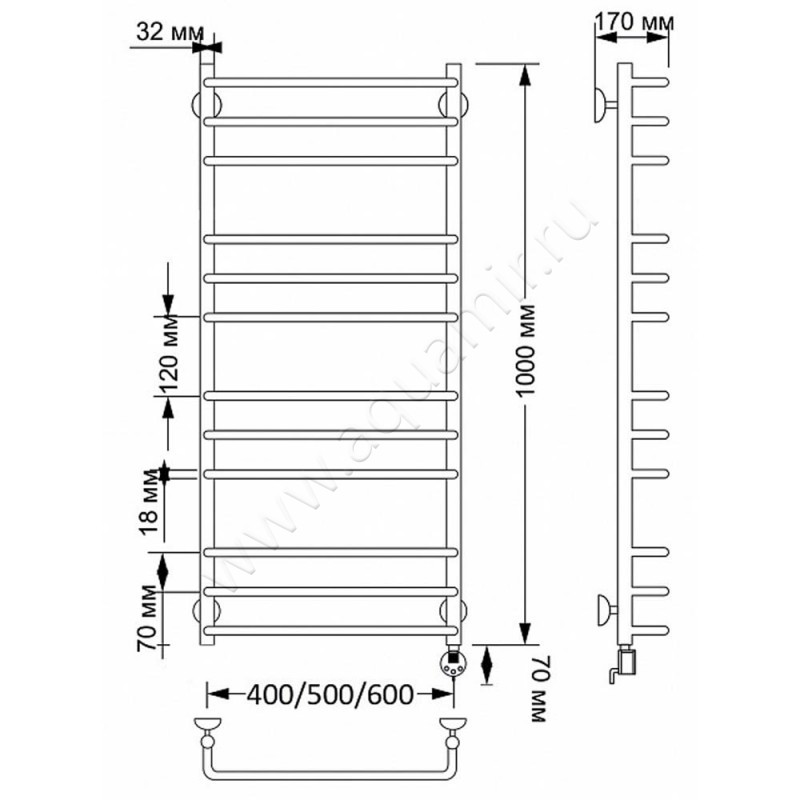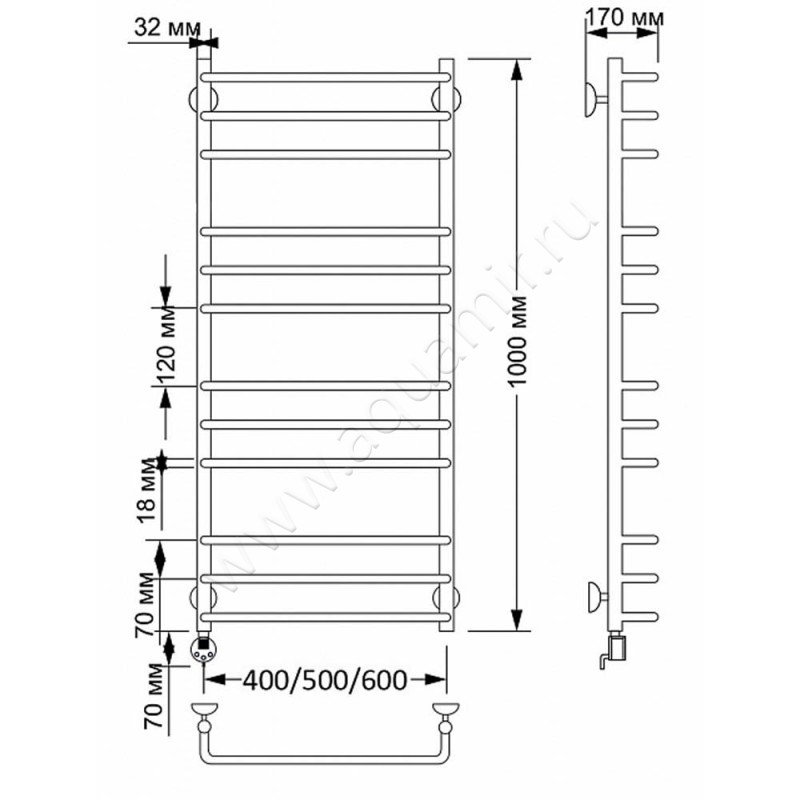 Полотенцесушитель латунный электрический Secado Мерида 3 100x60, бронза, R (4603777464042)
