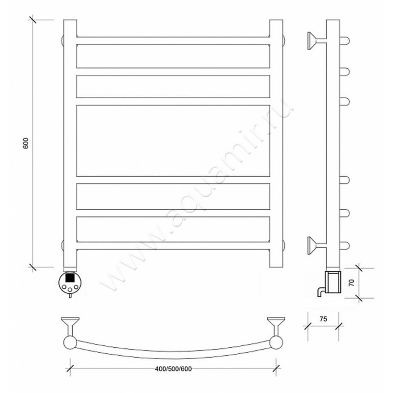 Полотенцесушитель электрический Secado Милан 3 60x60, хром, R (4603777451585)