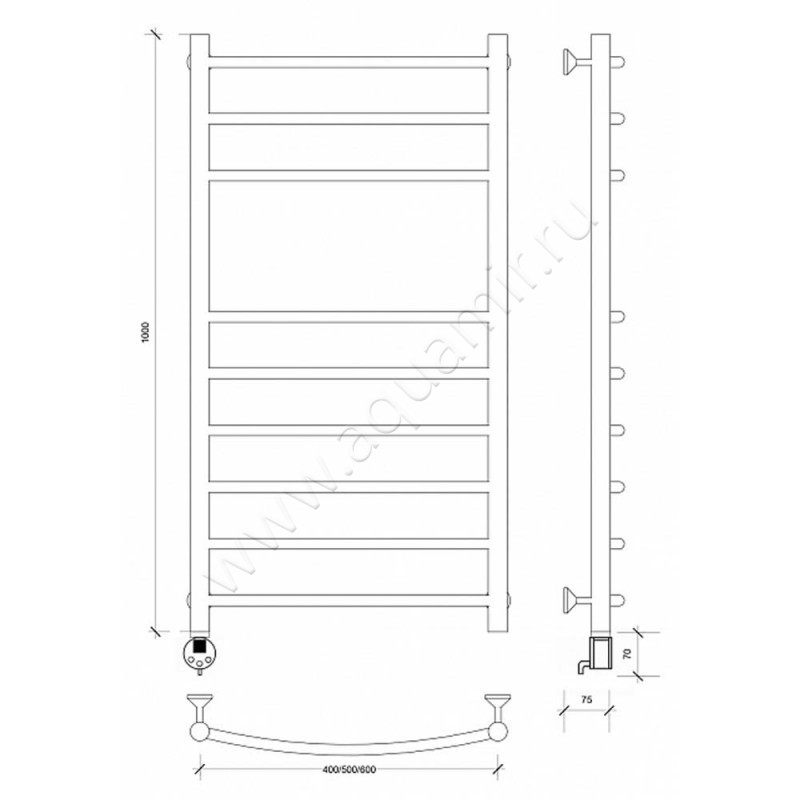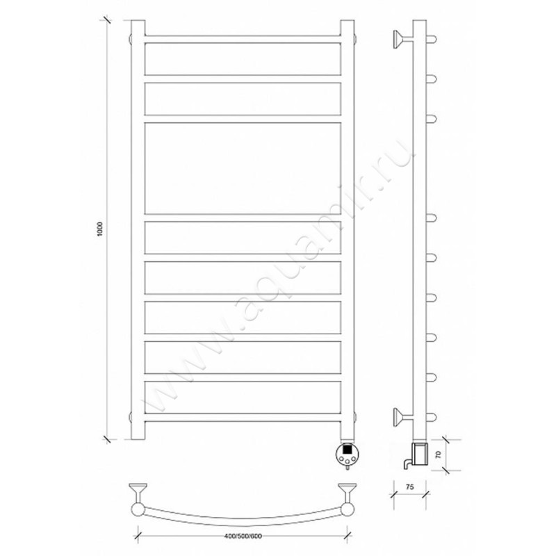Полотенцесушитель электрический Secado Милан 5 100x50, хром, R (4603759409184)