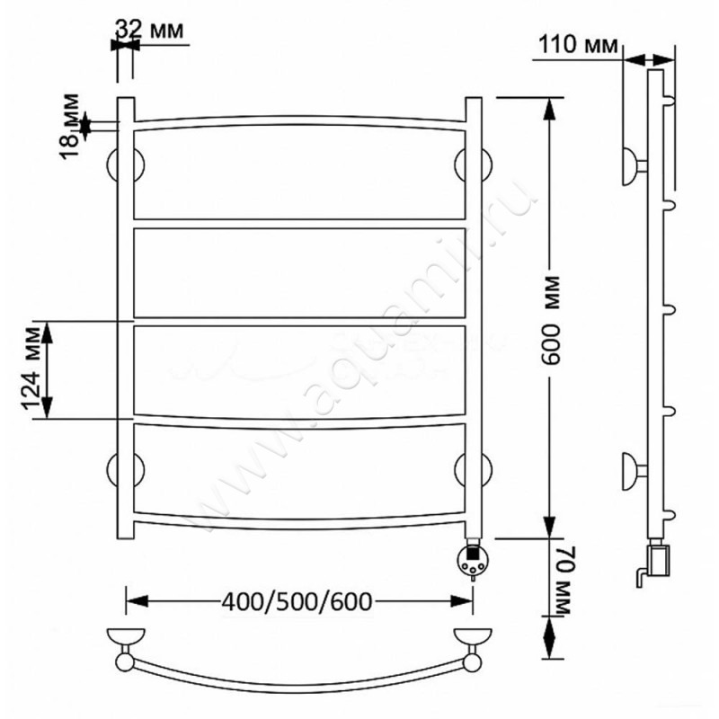 Полотенцесушитель латунный электрический Secado Милан 1 60x60, бронза, L (4603777462567)