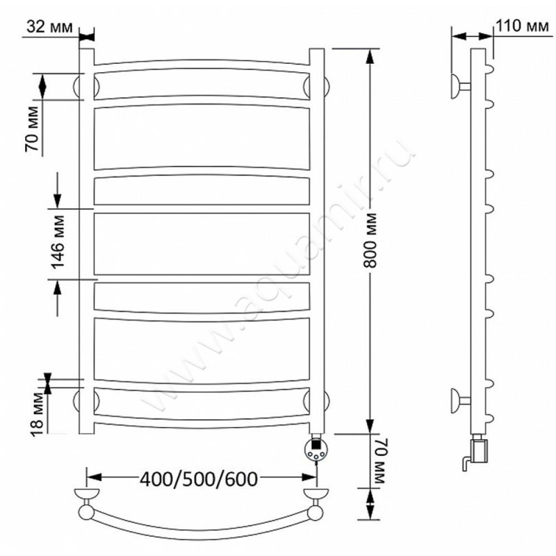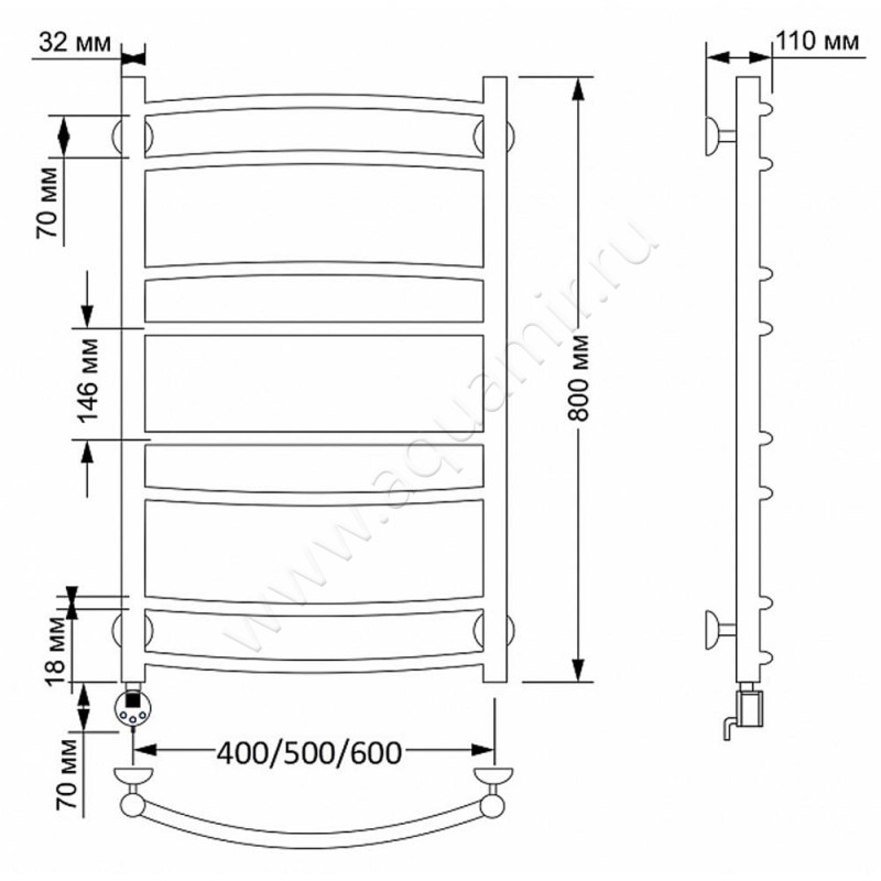 Полотенцесушитель латунный электрический Secado Милан 2 80x50, бронза, L (4603777478261)