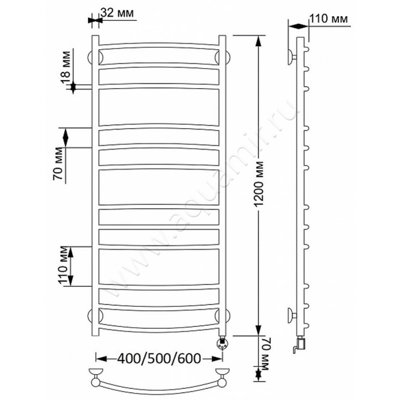 Полотенцесушитель латунный электрический Secado Милан 3 120x40, бронза, L (4603777463267)