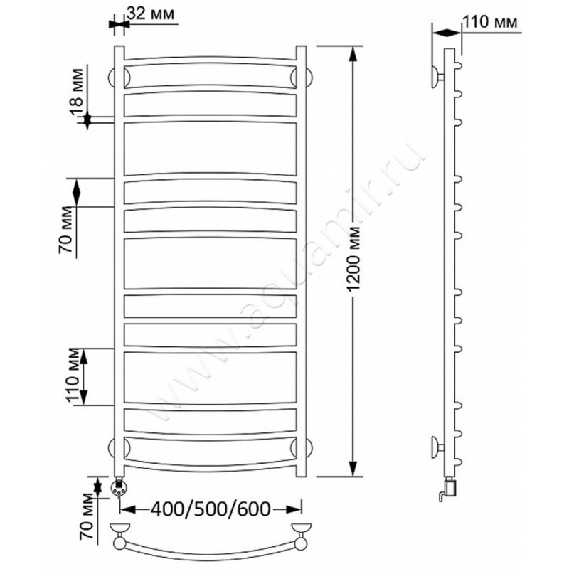 Полотенцесушитель латунный электрический Secado Милан 3 120x40, бронза, R (4603777463274)