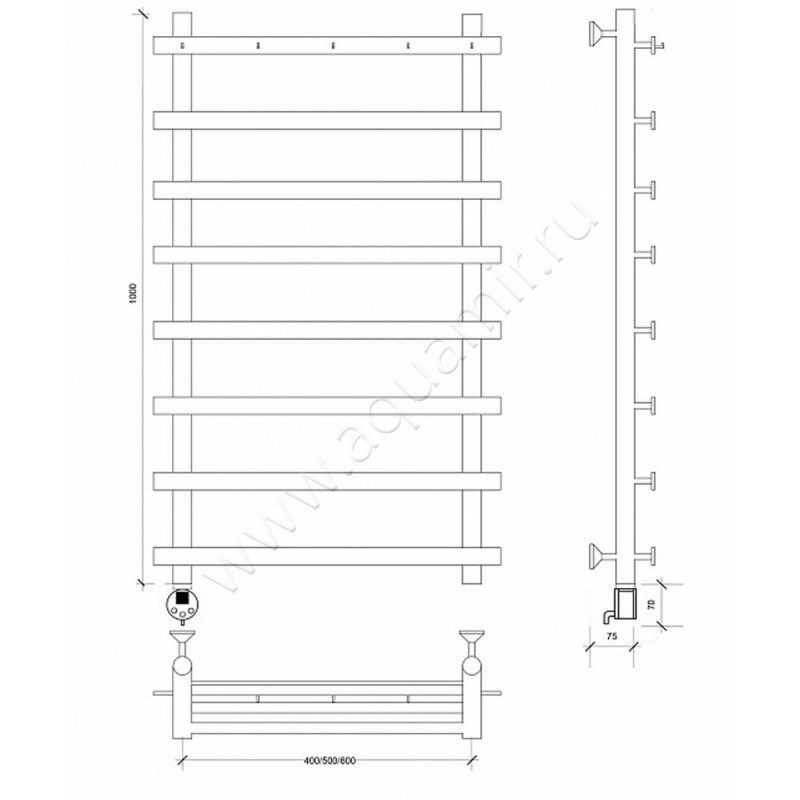 Полотенцесушитель электрический Secado Понтида 1 100x60, хром, L (4603759402062)