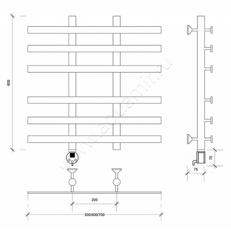 Полотенцесушитель электрический Secado Понтида 4 60x60, хром, L (4603777457228)