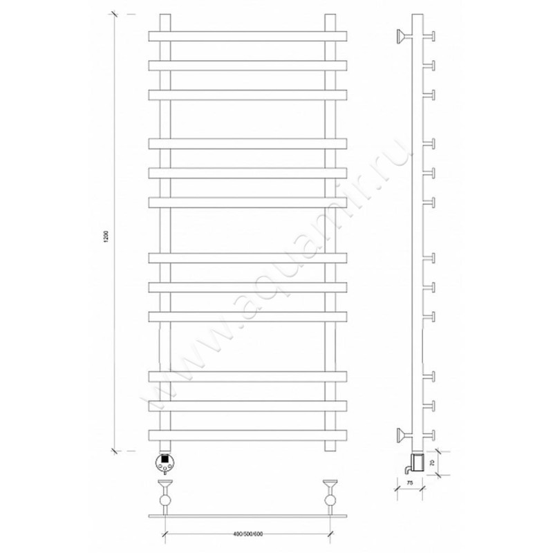 Полотенцесушитель электрический Secado Понтида плюс 120x60, хром, R (4603759409528)