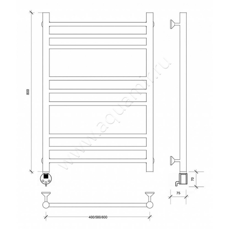 Полотенцесушитель электрический Secado Триада 3 80x50, хром, R (4603759409740)