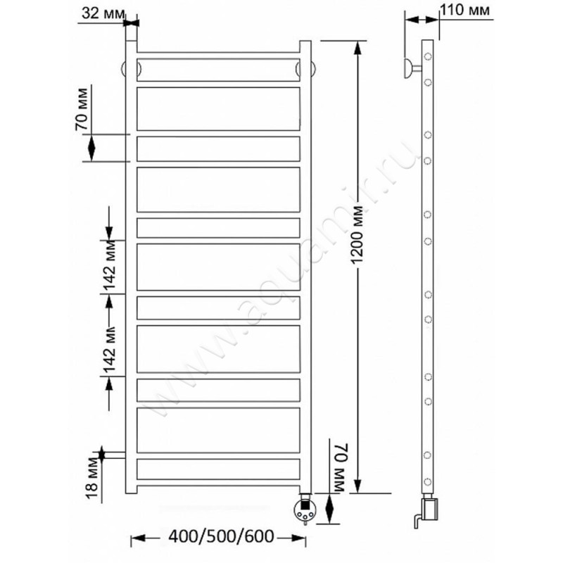 Полотенцесушитель латунный электрический Secado Триада 2 120x40, бронза, L (4603777468392)