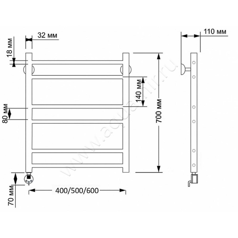 Полотенцесушитель латунный электрический Secado Триада 2 70x50, бронза, R (4603777468682)