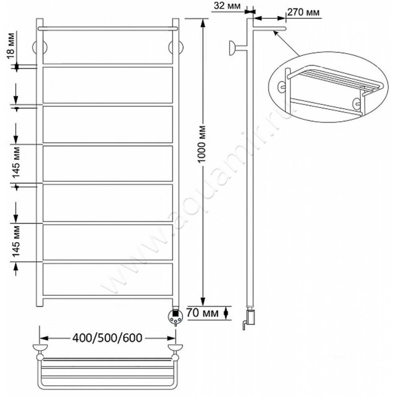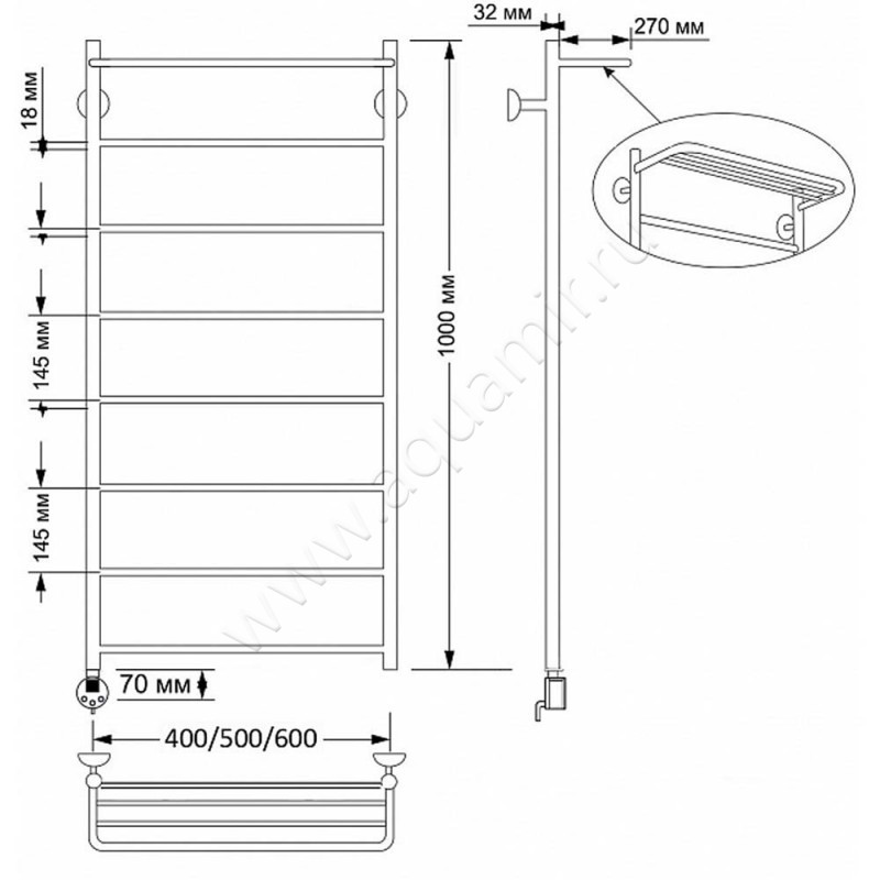 Полотенцесушитель латунный электрический Secado Триада 4 100x60, бронза, L (4603777469443)