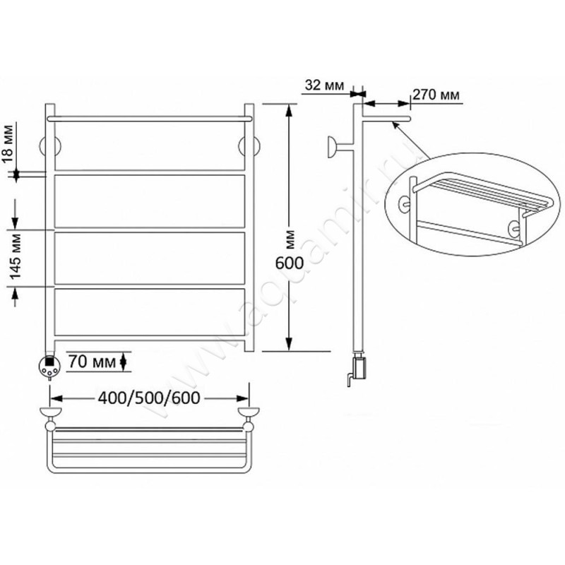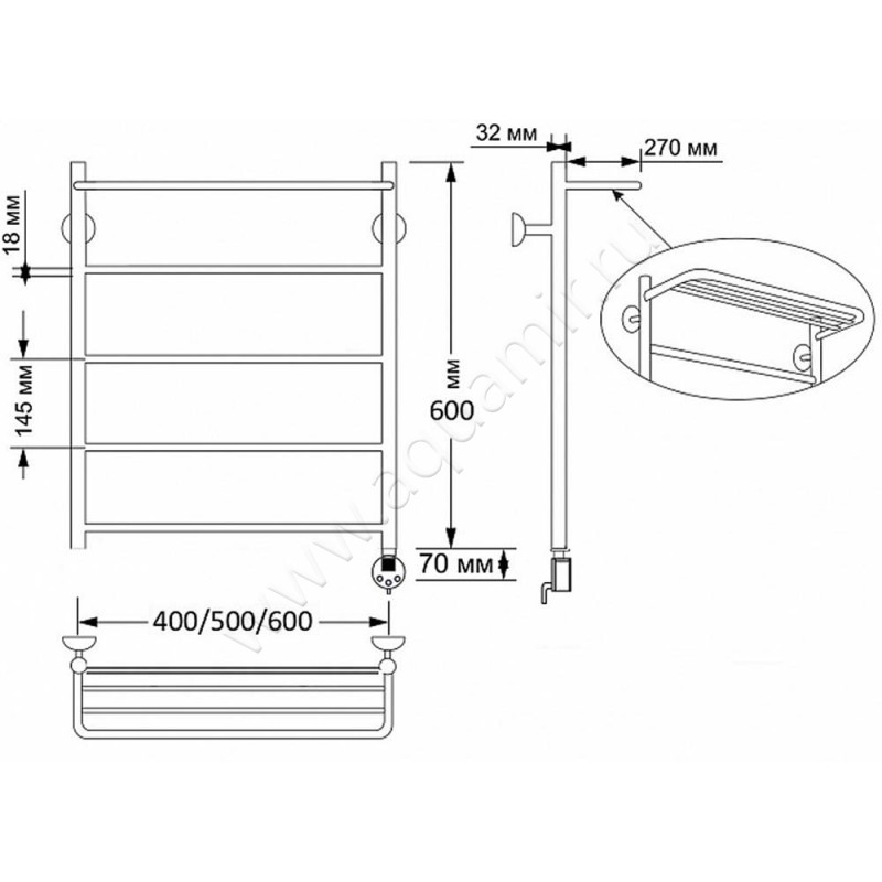 Полотенцесушитель латунный электрический Secado Триада 4 60x50, бронза, R (4603777469504)