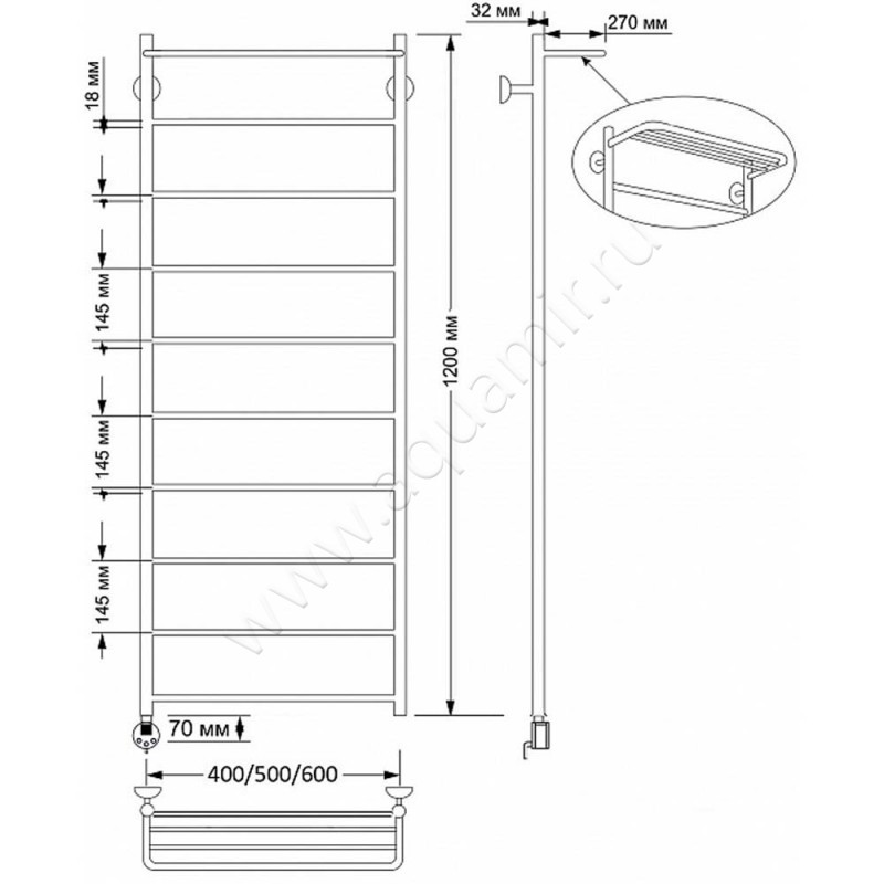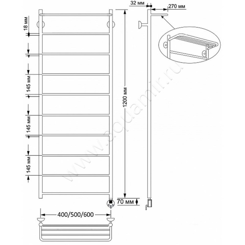 Полотенцесушитель латунный электрический Secado Триада 4 120x60, бронза, R (4603777469573)