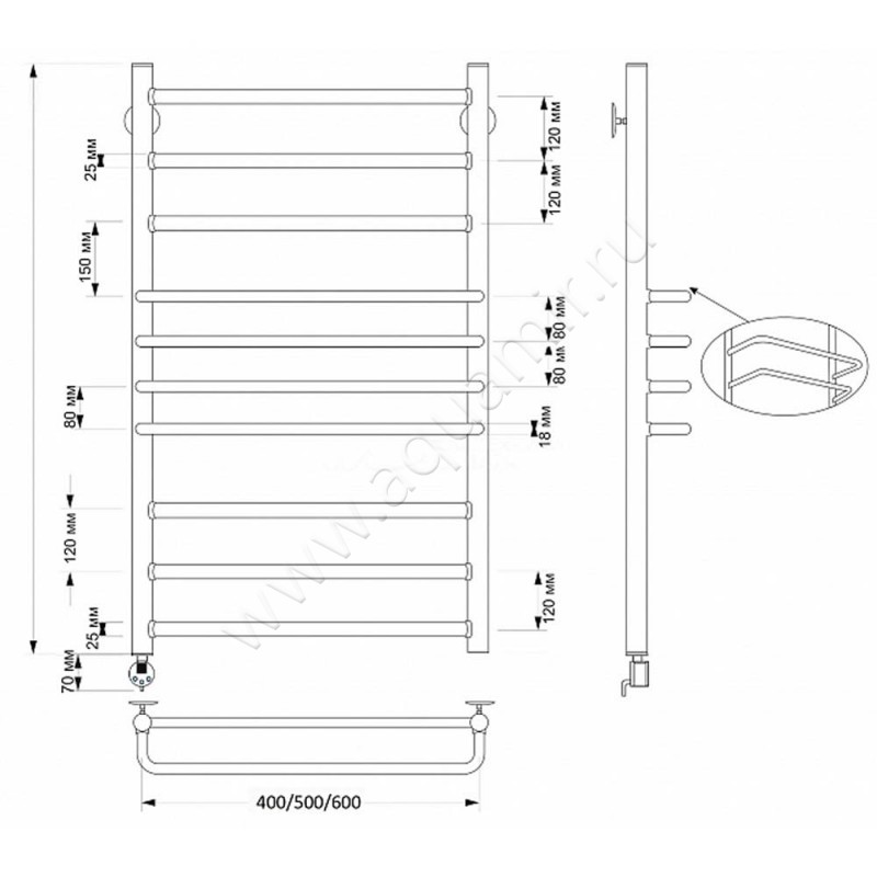 Полотенцесушитель латунный электрический Secado Триест 120x50, бронза, R (4603777470517)