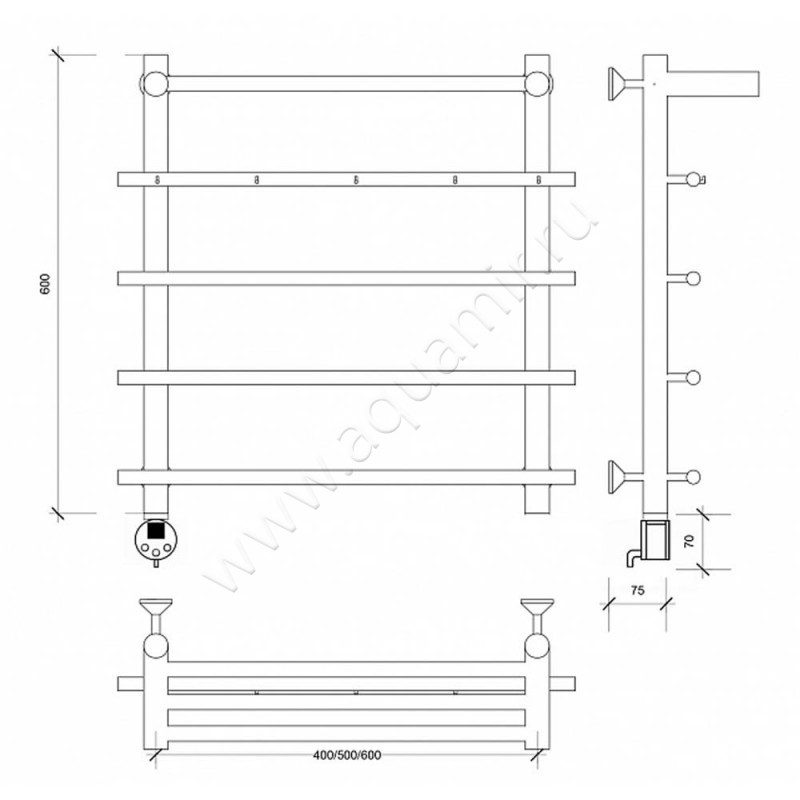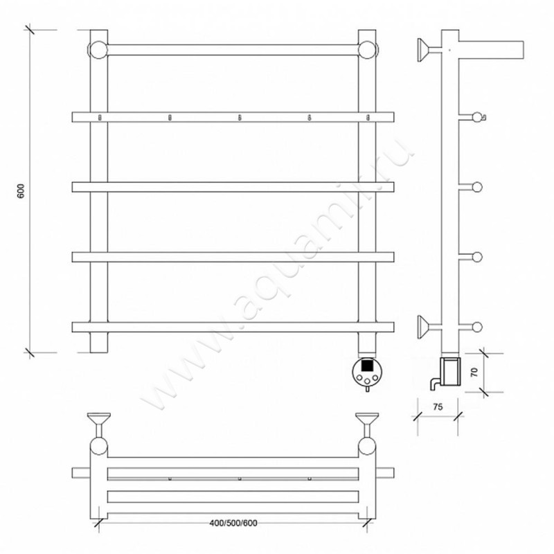 Полотенцесушитель электрический Secado Турин 1 60x50, хром, L (4603777455347)